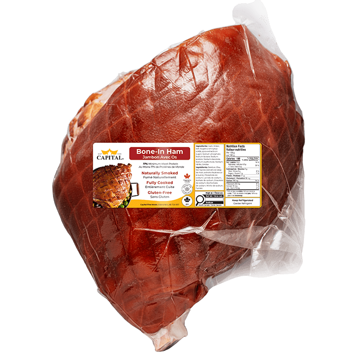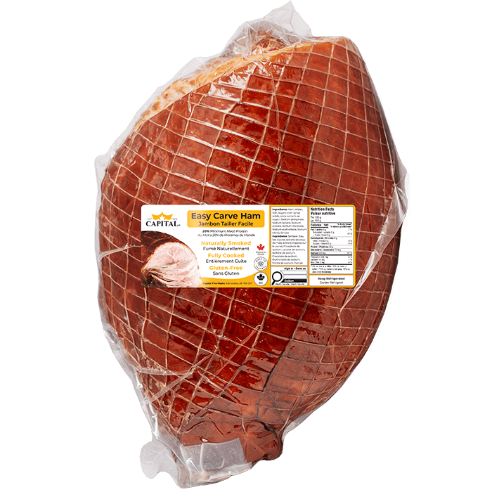 - Place the Ham in a 385°F oven for approximately 2.5 hours. (NOTE: this will vary depending on the size of the ham. The Capital Easy-Carve Ham is fully cooked, so you only need to heat the meat through, and crisp the surface of the skin. It is best to use a temperature probe to check that the internal temperature has reached 145°F for best results).